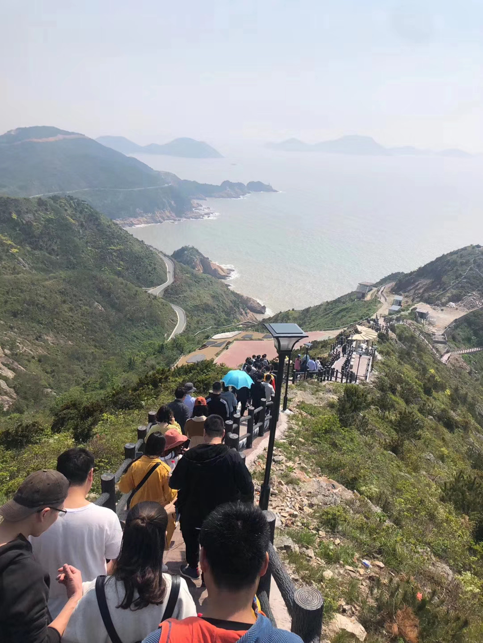 一個一個緊緊跟隨著,充滿著激情,一步一往上攀登,最終抵達綠道至高點:網(wǎng)紅觀景臺,并在這里留下勝利的笑影。海風(fēng)陣陣,吹干了路程中留下的汗水。站在最高點上放眼望去,著實有“一覽眾山小”的感覺。這讓大家感觸到,只有奮勇攀登,堅持到底,才可一覽無限風(fēng)光!